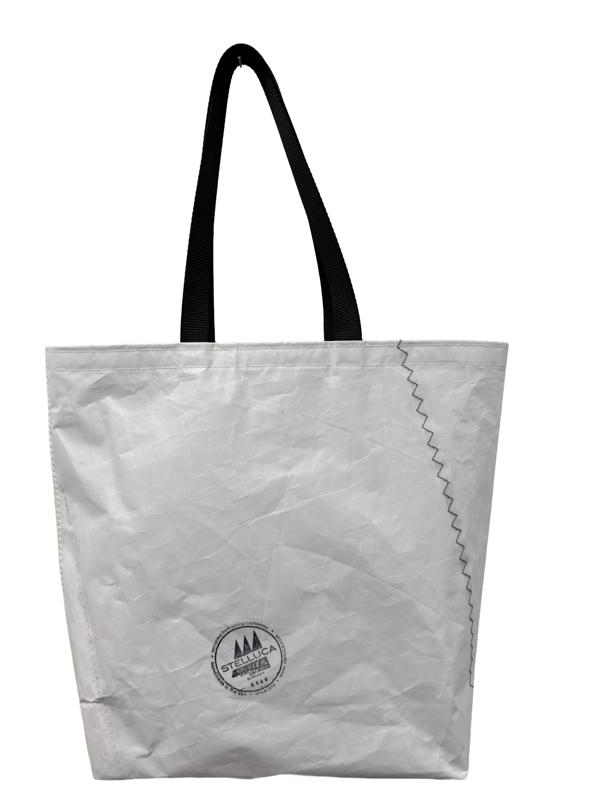 This is the perfect carry-all: beach gear, groceries, snacks, etc. Made from reclaimed sail cloth with 22" black straps for wearing on your shoulder.
