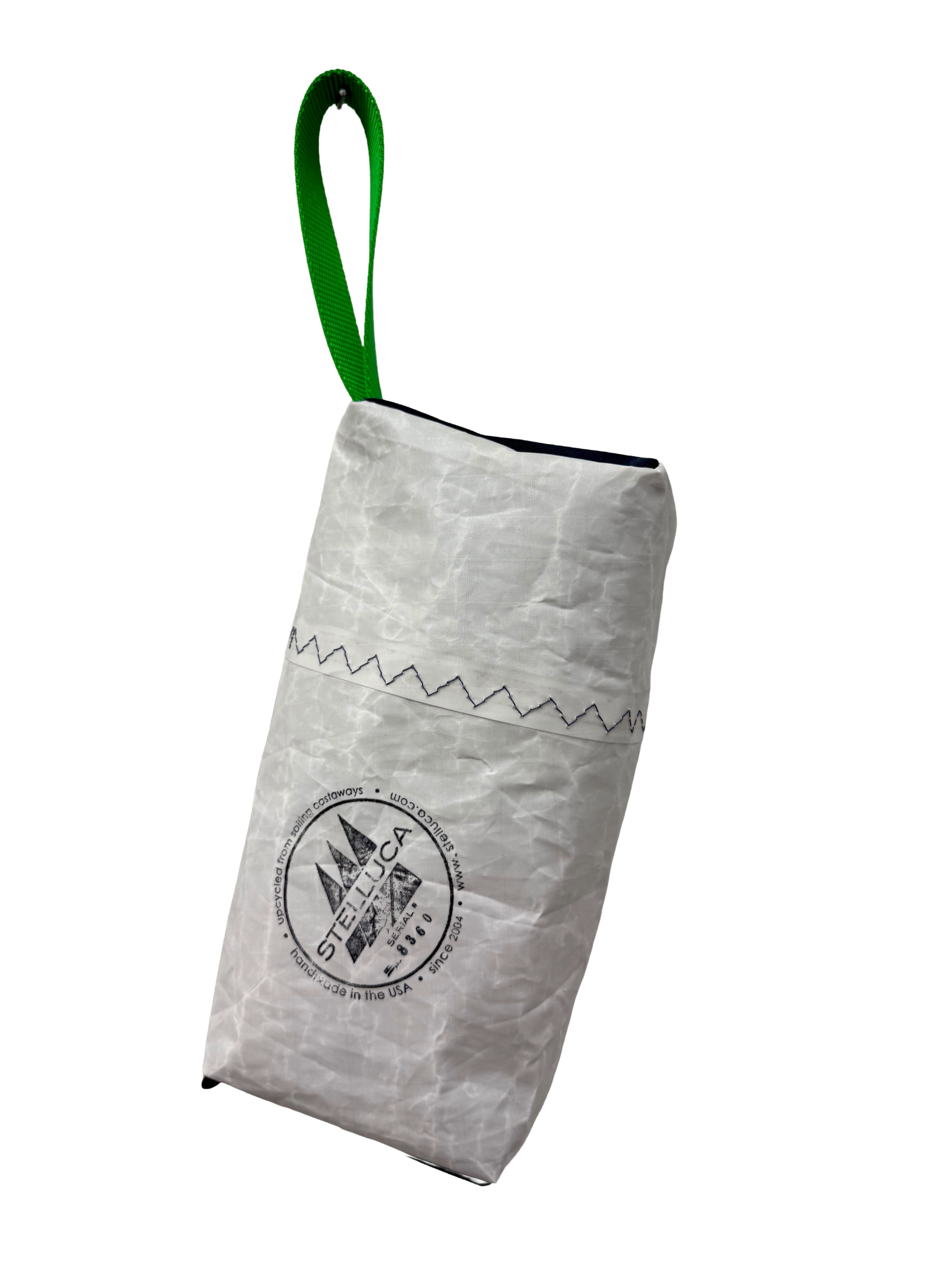 Our toiletry kits are made from soft upcycled sailcloth. There is a reinforced strap to make it easy to grab and throw in a bag. When not in use, they fold almost completely flat for easy storage.